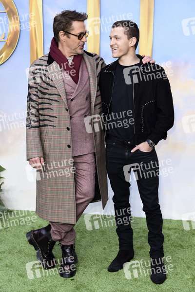 Robert Downey Jr. und Tom Holland bei der Premiere des Kinofilms 'Dolittle / Die fantastische Reise des Dr. Dolittle' im Empire Leicester Square. London, 25.01.2020