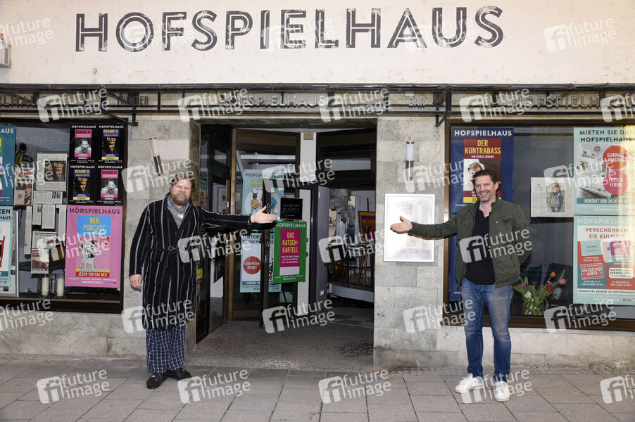 Michael A. Grimm und Andreas Bittl bei der Hauptprobe 'Der Kontrabass' im Hofspielhaus. München, 25.03.2021