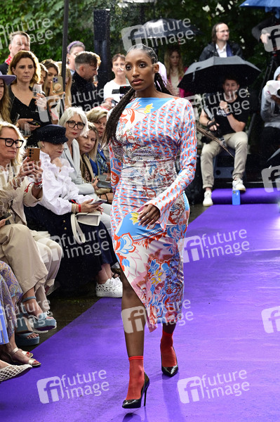 Model bei der Anja Gockel Fashion Show 'Let the Birds Fly' auf der Berlin Fashion Week S/S 2025 im Paris44. Berlin, 02.07.2024