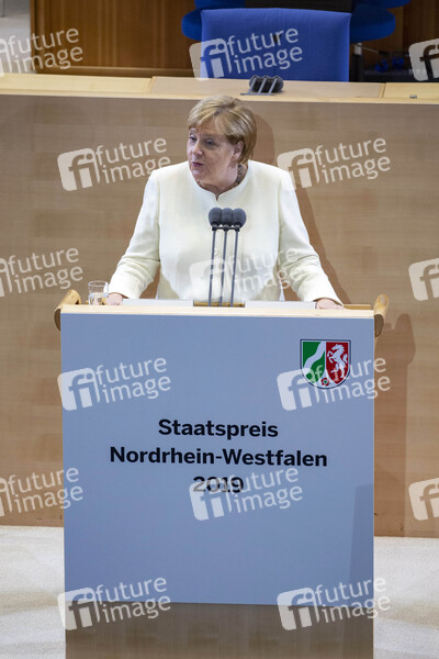 Angela Merkel bei der Verleihung des Staatspreises des Landes Nordrhein-Westfalen 2019 an Klaus Töpfer im WCCB. Bonn, 16.09.2019