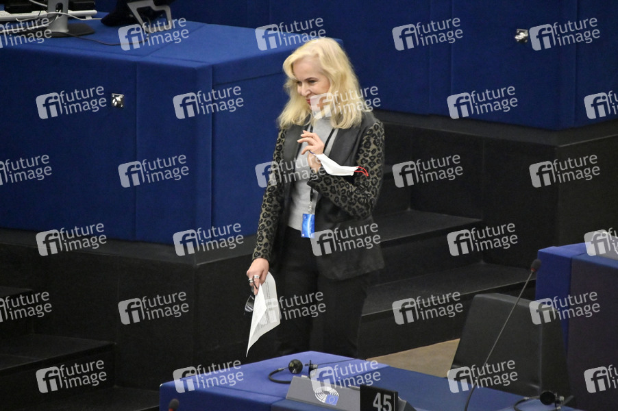 Annika Bruna bei einer Plenartagung über den Schutz von Tieren beim Transport im Plenarsaal des Europäischen Parlaments. Straßburg, 20.01.2022