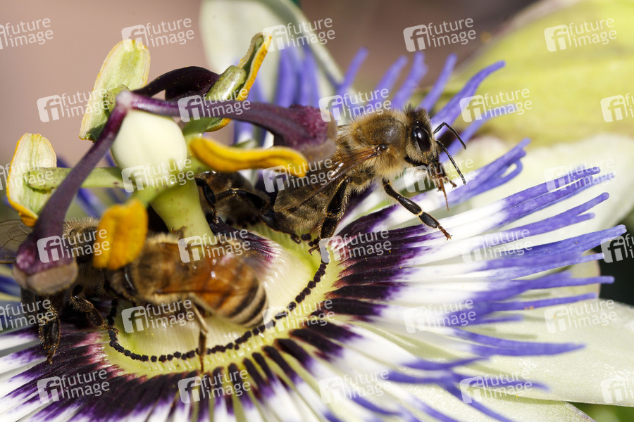 Biene, Bienen, Honig, Honigbiene, Apis, Apidae, Hautflügler, Honigbienen, Echte Bienen, Passionsblume, Mediterrane Kletterpflanze, Blüte, Blüten, Blütenkelch, Bestäubung, Insekt, Insekten, Natur, Naturschutz, Tiere im Garten, staatenbildende Arten, Pollen, Pollensammeln, Glyphosat, Glyphosatverbot, Glyphosat-Verbot, Neonicotinoide, Glyphosat-Zulassung, Pflanzenschutzanwendungs-Verordnung, Pflanzenschutzmittel, Unkrautvernichtungsmittel, Symbolbild, Symbolfoto