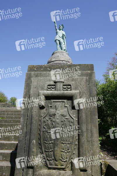 soll an den Cheruskerfürsten Arminius (Lateinisch, in deutsch: Hermann) erinnern, Gesanthöhe 53.46 m, Sandsteinunterbau 26.89m, Figur 26.57 m, besteht aus einer Eisenrohrkonstruktion mit Oberfläche aus Kupferplatten, Erbauer Ernst von Bandel, Baubeginn 1838, nach der Revolution von 1848 ruhte der Bau bis 1863, festliche Einweihung 1875
