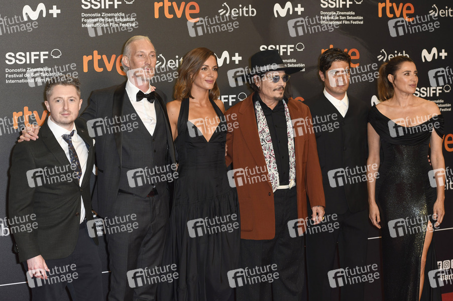 Ryan McParland, Bruno Gouery, Antonia Desplat, Johnny Depp, Riccardo Scamarcio und Luisa Ranieri bei der Premiere des Kinofilms 'Modi - Three Days on the Wings of Madness' auf dem 72. Internationalen Filmfestival San Sebastian / Festival Internacional de Cine de San Sebastián im Kursaal. San Sebastian, 24.09.2024
