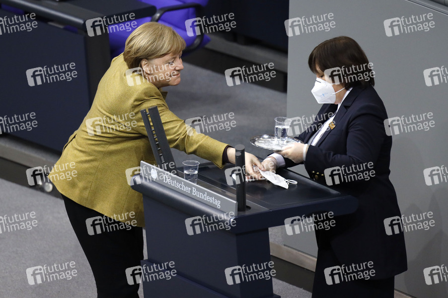 Angela Merkel in der 209. Sitzung des Deutschen Bundestages im Reichstagsgebäude. Berlin, 11.02.2021