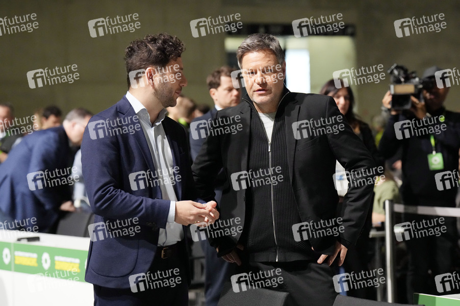 Felix Banaszak und Robert Habeck bei der außerordentlichen Bundesdelegiertenkonferenz von Bündnis 90/Die Grünen im City Cube. Berlin, 26.01.2025
