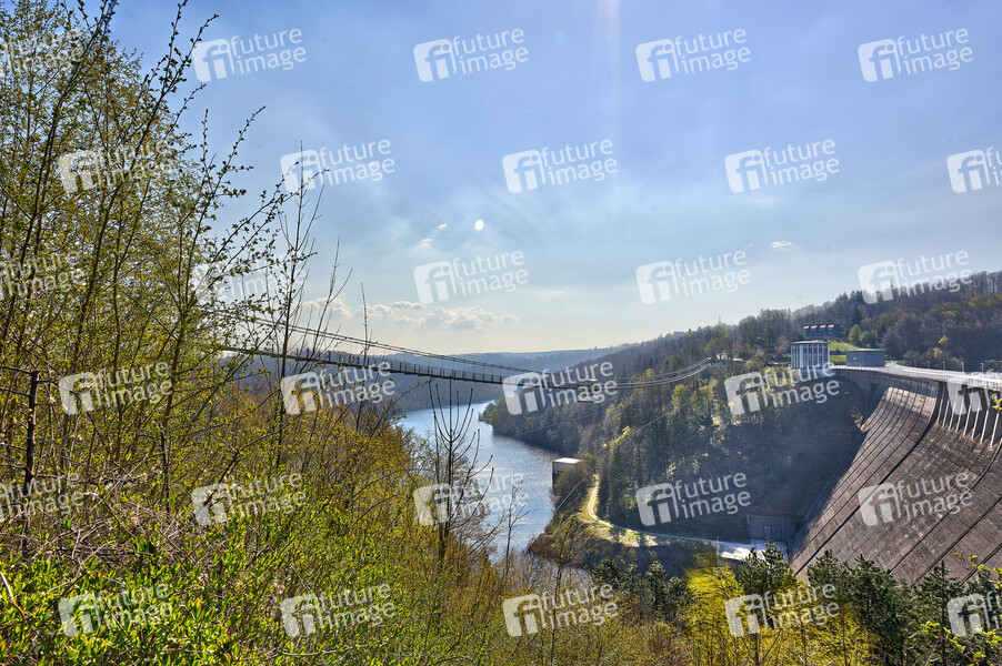 Rappbodetalsperre und 483 m lange Fußgängerhängebrücke Titan RT im Landkreis Harz. Hasselfelde, 08.05.2021
