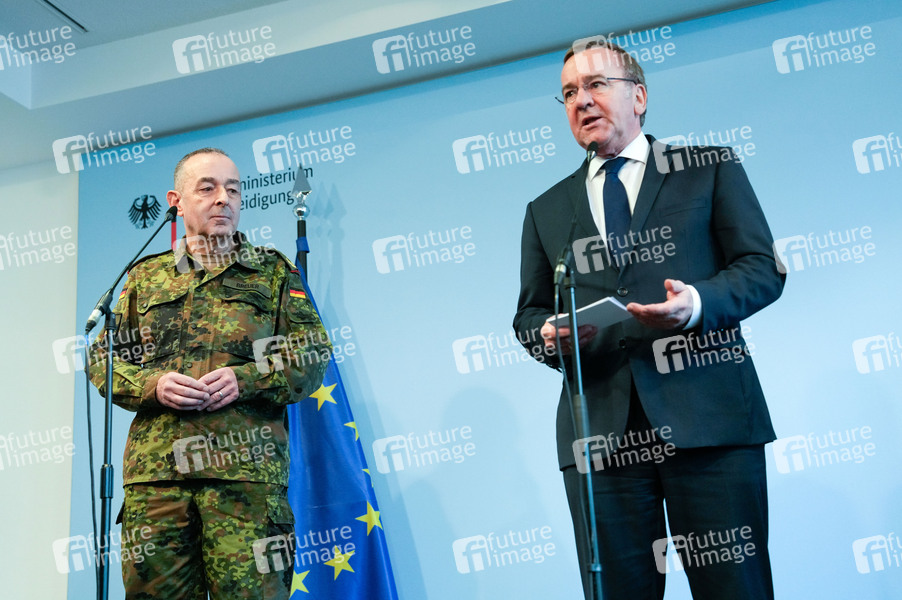 Carsten Breuer und Boris Pistorius bei der Pressekonferenz des Bundesministers der Verteidigung zum Ergebnis und den Inhalten der neuen 'Grobstruktur Streitkräfte' im Bundesministerium der Verteidigung. Berlin, 04.04.2024