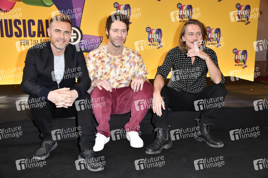 Gary Barlow, Howard Donald und Mark Owen von Take That beim Photocall zu 'The Band - Das Musical' im Stage Theater des Westens. Berlin, 01.04.2019