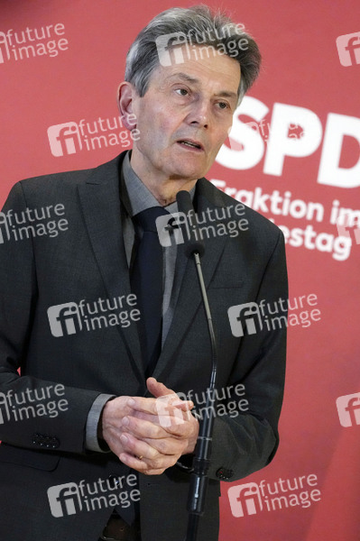 Rolf Mützenich beim Pressestatement zur Fraktionssitzung der SPD-Bundestagsfraktion im Reichstagsgebäude. Berlin, 03.12.2024