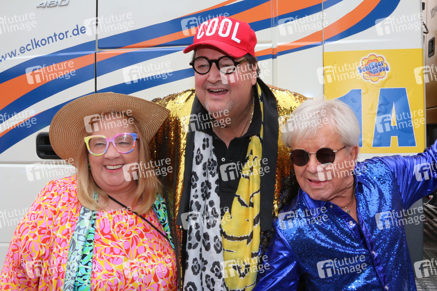 Kathy Kelly, Andreas Ellermann und G.G. Anderson beim 27. Schlagermove 2025 auf dem Heiligengeistfeld. Hamburg, Hamburg, 05.07.2025