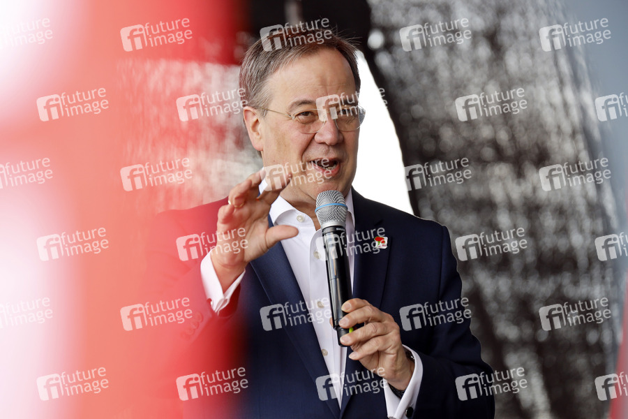 Armin Laschet bei der Kundgebung des NRW DGB zum Ersten Mai im Autokino an der Merkur Arena. Düsseldorf, 01.05.2021