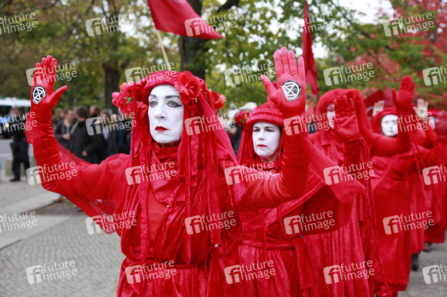 The Red Rebel Brigade der Umweltschutzgruppe 'Extinction Rebellion' bei einer Demonstration vom Tiergarten zum Brandenburger Tor. Berlin, 11.10.2019
