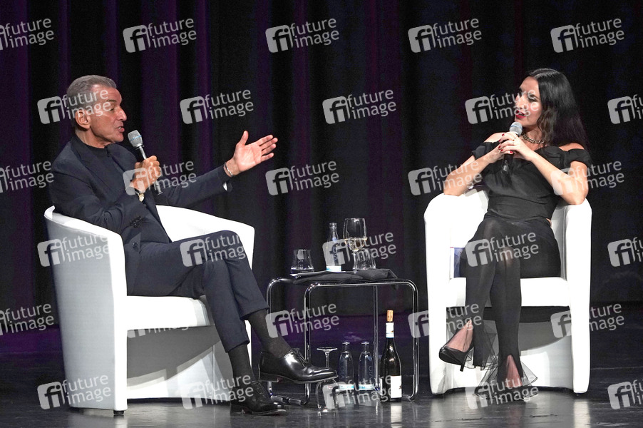 Michel Friedman und Mirna Funk bei der Lesung des Sachbuchs 'Von Juden Lernen' von Mirna Funk in der Urania. Berlin, 07.02.2024