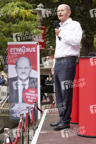 Olaf Scholz bei einer Wahlkampfveranstaltung der SPD auf der Burgdorfer Szraße. Lehrte, 21.09.2021