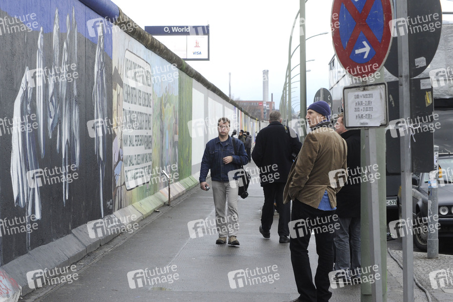 Liam Neeson besucht die Berliner Mauer an der East Side Gallery während einer Drehpause zu seinem Thriller 'Unknown Identity'