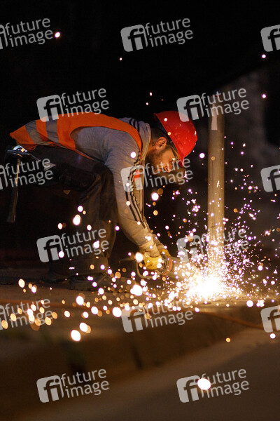 Schleifen, Schleifer, Flex, Flexen, Handwerker, Handwerk, Winkelschleifer, Winkelschleifen, Funken, Funkenlfug, Gleisarbeiten, Helmpflicht, Nachtschicht, Bauwirtschaft, Kurzarbeit, Kurzarbeitergeld, Warnweste, Warnwesten, Gleisarbeiter, Bauarbeiter, Feinstaubbelastung, Arbeitssicherheit, Atemwege, Schadstoffe, Berufskrankheit, Baustelle, Arbeitsgesundheit, Gleis, Gleise, Gleisbett, Schweißen, Schweißer, Schweißarbeiten, Arbeitsschutz, Arbeitsrisiko, Knotenpunkt, KVB-Linie, KVB, Kölner Verkehrs-Betriebe, Haltestelle, Umleitung, Arbeiter, Schichtarbeit, Schutzkleidung, Arbeitskleidung, Berufsrisiko, Berufsbekleidung, Lärmschutz, Gefahrenzulage, Schwellen, Verzögerungen im Betriebsablauf, Signalfarben, Signalfarbe, Baustelle, Bauarbeiten, Gefahrenbereich, Schienen, Stundenlohn, Schichtdienst, Schichtbetrieb, Schienennetz, Gleisnetz, Gleisinstandhaltung, Ersatzfahrplan, Gleiserneuerung, Infrastruktur, Unfallverhütung, Arbeiten am Gleis, Streckensperrung, Gleisbau, Nahverkehr, ÖPNV, Bahnverkehr, Tarif, Tariflohn, Gewerkschaften, Tarifvertrag, Öffentlicher Dienst, Unfallverhütung, Arbeitsschutzgesetz, Arbeitszeiten, 40-Stunden-Woche, Aufschwung, Konjunktur, Baubranche, Arbeitsmedizin, Rückenprobleme, Baustellenverordnung, Fachkräfte, Fachkräftemangel, Facharbeiter, Auftragslage, Wirtschaft, Wirtschaftswachstum, Konjunktur, Arbeitslosenzahlen, Arbeitsplatz, Arbeitsplätze, Vollbeschäftigung, Bruttoinlandsprodukt, BIP, Lehre, Ausbildung, Berufsbekleidung, Wirtschaftsdaten, Job, Jobs, Stellen, Vollzeit, Teamwork, Themenbild, Themenfoto, Symbolbild, Symbolfoto