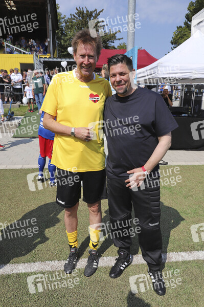 Lou Richter und Tim Mälzer beim Benefiz-Fußballspiel 'Kicken mit Herz' 2019 im Stadion Hoheluft. Hamburg, 25.08.2019