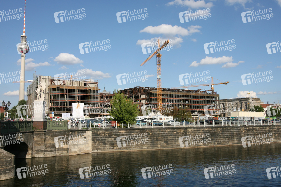 Er beherbergte die Volkskammer der DDR und wurde des Weiteren als volksoffenes Kulturhaus genutzt, erbaut 1974-1976, Chefarchitekt: Heinz Graffunder, das Gebäude hatte die Form eines Quaders, Länge 180 m, Breite 85 m, Höhe 32 m, links im Bild ist der Fernsehturm, Spree