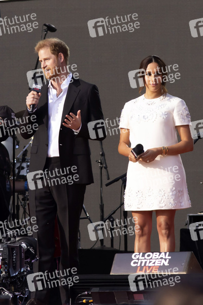 Prinz Harry und Herzogin Meghan Markle auf der Bühne vom Global Citizen Live Festival auf der Great Lawn im Central Park. New York, 25.09.2021