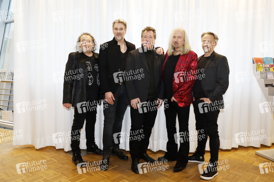 Martin Becker, Daniel Bätge, Claudius Dreilich, Bernd Römer und Heiko Jung von Karat bei der Preview der MDR-Dokumentation '50 Jahre Karat' im Zeitgeschichtlichen Forum. Leipzig, 25.03.2025