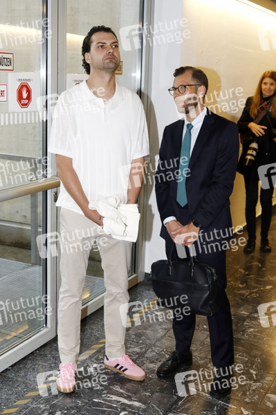 Jimi Blue Ochsenknecht mit seinem Anwalt Matthias Holzmann bei der Ankunft zum Prozess wegen mutmaßlichen schweren Betrugs gegen Jimi Blue Ochsenknecht im Landesgericht Innsbruck. Innsbruck, 22.08.2025