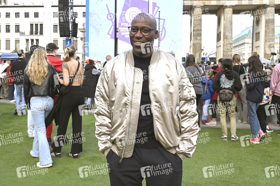 Joe Chialo bei der Eröffnung des Fußballkultursommers 2024 anlässlich der Fußball-Europameisterschaft 2024 auf der Fanmeile am Brandenburger Tor. Berlin, 12.06.2024