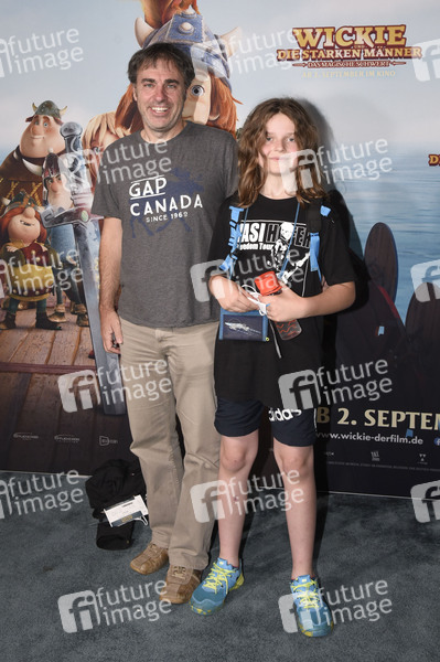 Josef Braun mit Sohn Frederic bei der Deutschlandpremiere des Animationsfilms 'Wickie und die starken Männer - Das magische Schwert / Vic the Viking and the Magic Sword' in der Astor Film Lounge im ARRI-Kino. München, 21.08.2021
