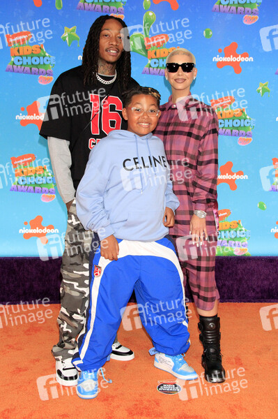 Wiz Khalifa mit Sohn Sebastian Taylor Thomaz und Ehefrau Amber Rose bei der Verleihung der Nickelodeon Kids’ Choice Awards 2023 im Microsoft Theater. Los Angeles, 04.03.2023