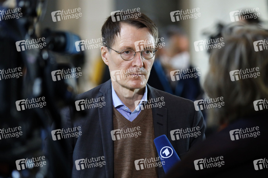 Karl Lauterbach beim Pressestatement nach der Befragung der Bundesregierung in der 217. Sitzung des Deutschen Bundestages im Reichstagsgebäude. Berlin, 24.03.2021