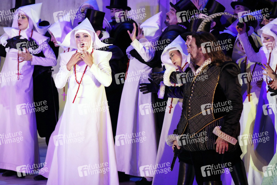 Anna Netrebko (Leonora) und Placido Domingo (Graf Luna) bei der Fotoprobe von Giuseppe Verdis 'Il Trovatore' in der Staatsoper im Schiller Theater. Berlin, 23.11.2013