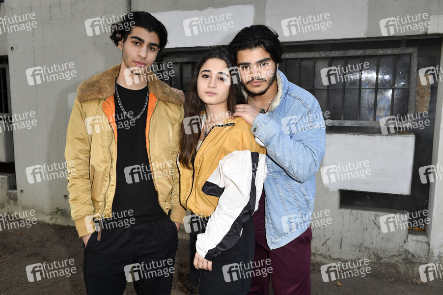 Doguhan Kabadayi, Derya Dilber und Mohammad Eliraqui am Set des Kinofilms 'Nasser Hund' im Künstlerhof Alt Lietzow. Berlin, 29.10.2019