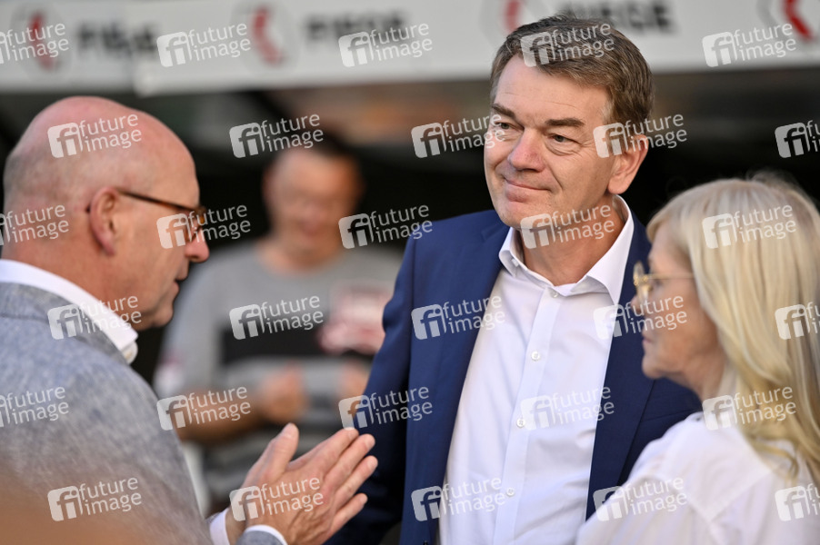 Markus Lewe und Jörg Schönenborn bei der Premiere des ARD-Krimis 'Tatort - Ein Freund, ein guter Freund' zum 20 jährigen Jubiläum des Münsteraner Tatorts im Preußenstadion. Münster, 30.08.2022