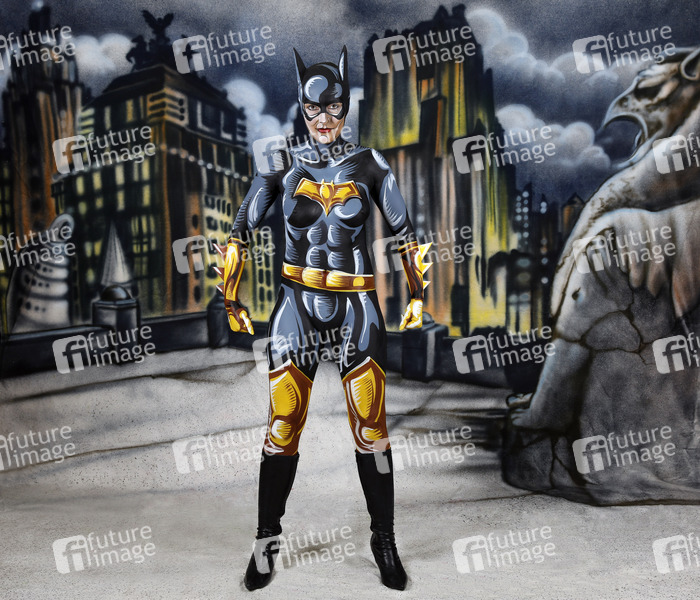 Projekt Farbkörper, Cosplay, Cosplayer, Bodypainting, Body-Painting, Make-up, Latexappliaktionen, Latexteile, Maskenbildnerei, Maskenbildner Körperkunst, Körperfarben, Farbe, Bemalung, Kunst, Malerei, Superheld, Superheldin, Comics, Comicfigur, Comicheft, DC, Batwoman, Batman, body painting, body art, superhero, super heroine, project color body, colors, colours, comic book