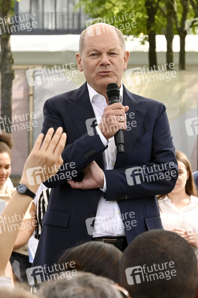 Olaf Scholz bei der Eröffnung des Demokratiefests zu 75 Jahren Grundgesetz auf der Bühne Dialogforum zwischen Kanzleramt und den Deutschen Bundestag. Berlin, 24.05.2024