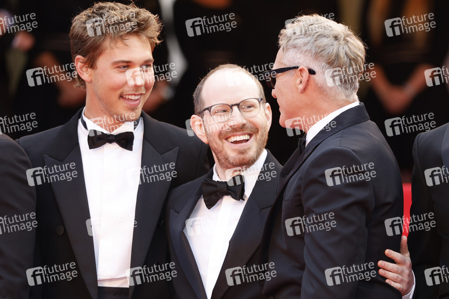 Austin Butler, Ari Aster und Joaquin Phoenix bei der Premiere des Kinofilms 'Eddington' auf dem Festival de Cannes 2025 / 78. Internationale Filmfestspiele von Cannes im Palais des Festivals. Cannes, 16.05.2025