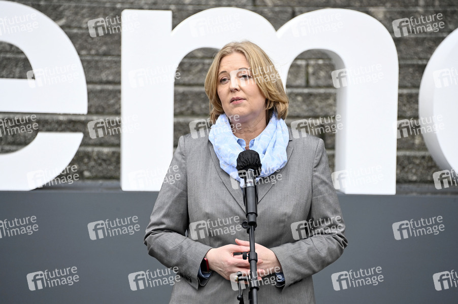 Bärbel Bas bei Pressestatements von Wolfgang Sobotka, Mickey Levy und Bärbel Bas am Schriftzug #WeRemember zur Erinnerung an die Millionen im Nationalsozialismus ermordeten Juden vor dem Reichstagsgebäude. Berlin, 25.01.2022