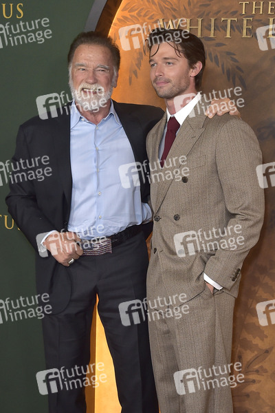 Arnold Schwarzenegger, mit Sohn Patrick Schwarzenegger bei der Premiere der 3. Staffel der HBO Serie 'The White Lotus' im Paramount Theater. Los Angeles, 10.02.2025