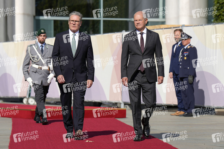 Keir Starmer und Olaf Scholz beim Empfang des Premierministers des Vereinigten Königreichs Großbritannien und Nordirland mit militärischen Ehren im Bundeskanzleramt. Berlin, 28.08.2024