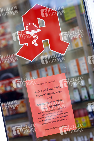 Eine Apotheke im Agnesviertel, in der Atemschutzmasken und Desinfektionsmittel ausverkauft sind. Köln, 16.03.2020