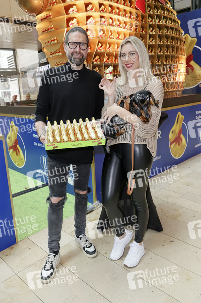 Kai Schwarz und Janika Schwarz beim Charity Verkauf von Lindt Osterhasen zu Gunsten der Hamburger Tafel e.V. und der Budnianer Stiftung in der Europa Passage. Hamburg, 14.03.2024