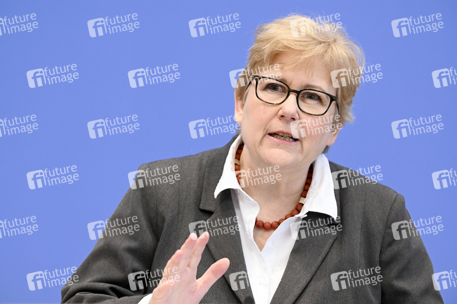 Beate Rudolf bei der Bundespressekonferenz zur Vorstellung des 'Monitor Menschenhandel in Deutschland - Erster Periodischer Bericht' im Haus der Bundespressekonferenz. Berlin, 17.10.2024