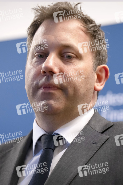 Lars Klingbeil beim Pressestatement zum Treffen des Bundesfinanzministers und des Exekutiv-Vizepräsidenten der Europäischen Kommission für Wohlstand- und Industriestrategie im Bundesfinanzministerium. Berlin, 26.05.2025