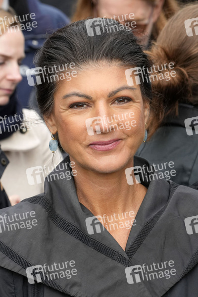Sahra Wagenknecht bei der Friedensdemonstration unter dem Motto 'Nein zu Krieg und Hochrüstung! Ja zu Frieden und internationaler Solidarität' vor der Siedessäule am Großen Stern. Berlin, 03.10.2024