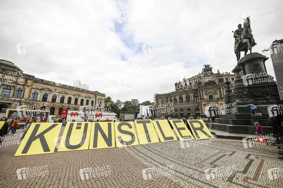 Demonstration 'Ohne uns ist Stille' der Organisation 'Leere Stühle' auf dem Theaterplatz in der historischen Dresdner Altstadt. Künstler, Veranstalter und Unternehmen der Veranstaltungsbranche wie Caterer und Techniker demonstrieren gemeinsem, um auf die Probleme und Wichtigkeit ihrer Branche aufmerksam zu machen. Dredsen, 05.06.2020