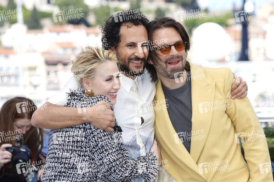 Maria Bakalova, Ali Abbasi und Sebastian Stan beim Photocall zum Kinofilm 'The Apprentice' auf dem Festival de Cannes 2024 / 77. Internationale Filmfestspiele von Cannes am Palais des Festivals. Cannes, 21.05.2024