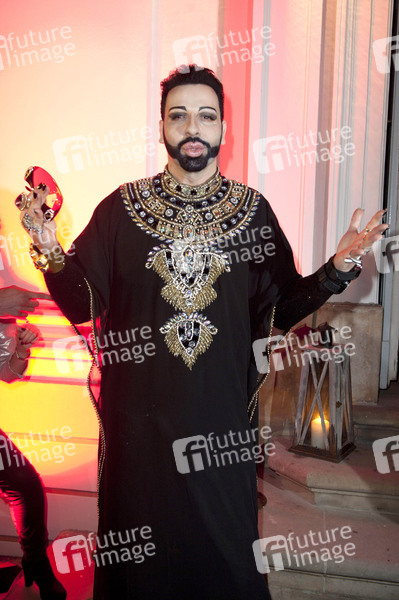 Harald Gloeoeckler beim Kunstevent zum offiziellen Verkaufsstart der Kollektion 'Glööckler Art by Borelly' mit einer Installation der Berliner Mauer und zu Kunstobjekten stilisierten Panzern im Schloss Friedrichsfelde. Berlin, 23.10.2013