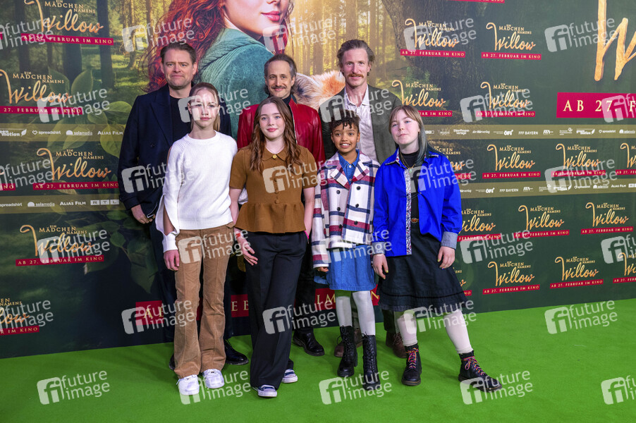 Max Giermann, Cora Trube, Ava Petsch, Michael Ostrowski, Mary Tölle, Golo Euler und Anna von Seld bei der Premiere des Kinofilms 'Ein Mädchen namens Willow' im Mathäser Filmpalast . München, 23.02.2025