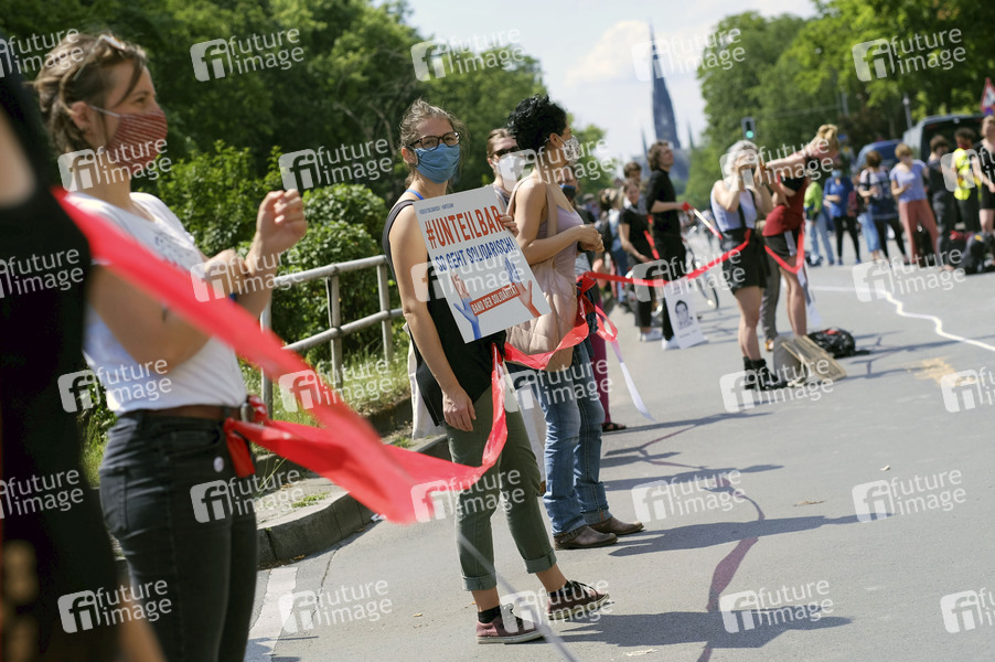 Demonstration vom Bündnis 'Unteilbar' mit einer Menschenkette gegen Rassismus und soziale Ungerechtigkeit vom Brandenburger Tor in Berlin-Mitte bis zum Hermannplatz in Berlin-Neukölln unter dem Motto 'SoGehtSolidarisch'. Berlin, 14.06.2020