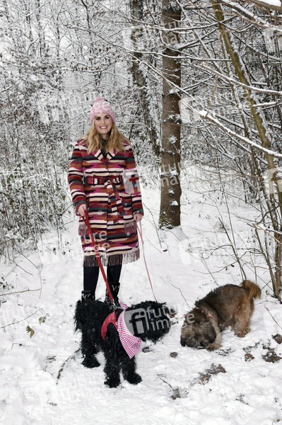 Alessandra Geissel beim Winterspaziergang mit ihren Hunden Jessy und Kira im Truderinger Wald. München, 06.01.2021